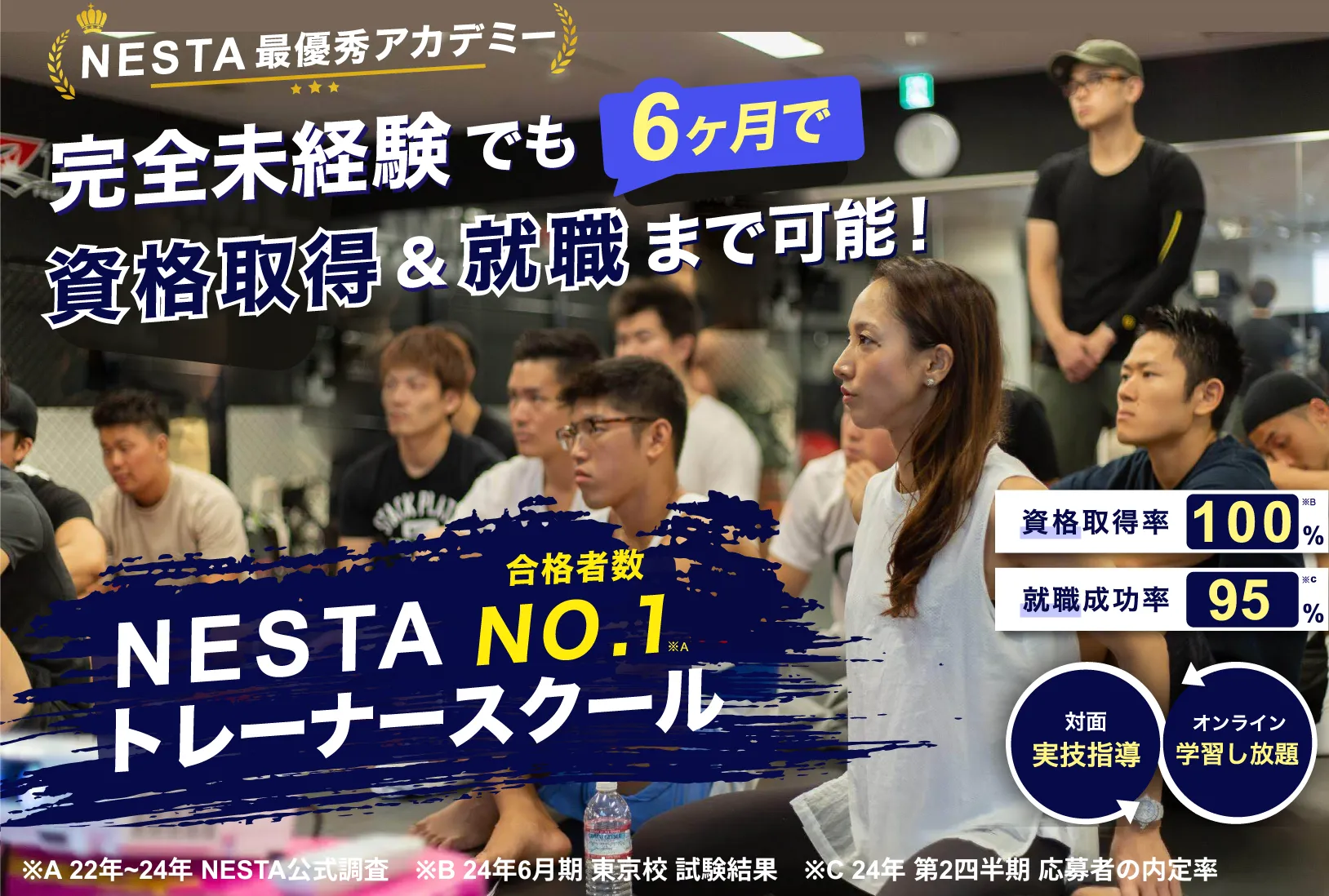 2ndPASSは、日本No.1のトレーナー輩出実績を誇るトレーナースクールです。2022年にはNESTA(全米エクササイズ&スポーツトレーナー協会)から最優秀アカデミーに認定されています。